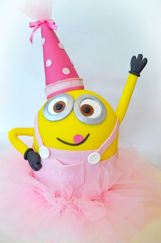 Minion Cake Idea #10: Who says you can’t have a minion cake at your little princess’ birthday party? This super pretty minion cake draped in a pink fondant jumper and pink tutu is perfect for a girly birthday bash. Even her party hat is a cute hot pink color! This cute minion birthday cake will definitely make your little one super happy.
