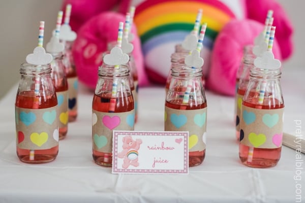 Colorful Care Bears Party Idea #8: Need to give your energetic party guests something to cool them down? How about this awesome Rainbow Juice?!