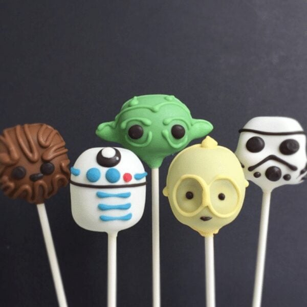 How cute are these Star Wars cake pops? They’re a must-have for any Star Wars-themed party! With so many iconic characters to choose from, you can have fun creating a whole galaxy of cake pops. Try Darth Vader, BB-8, Princess Leia, Chewbacca, and even Darth Maul for a mix of light and dark side treats.