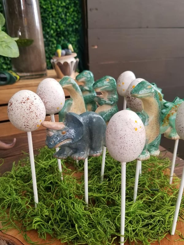 A couple different variations of Jurassic World Cake Pops were made available for the birthday celebrations. Our favorites may be these great dinosaur eggs that were found on top of a cake pop stick. How unique and we just love them! Those dinosaurs that were found throughout the eggs are pretty impressive, too. This is such a fun birthday party theme!