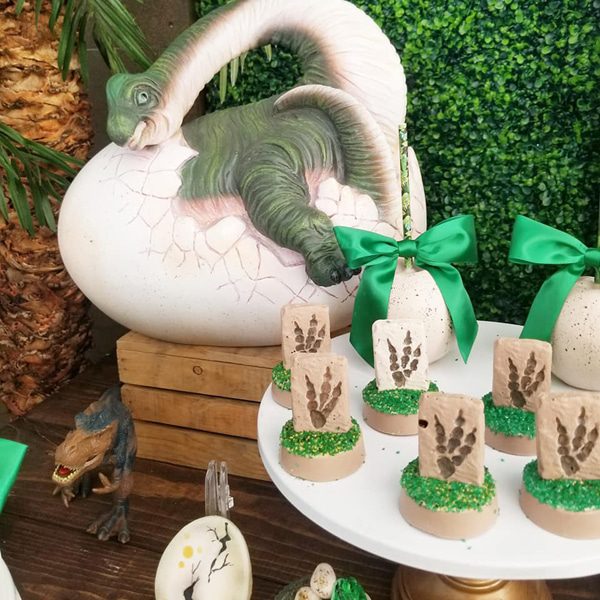 Watch out, because dinosaurs were found everywhere on the Jurassic World Dessert Table to make sure everyone was having the time of their lives! We love the dinosaur print desserts, but we just can’t get over how fun and realistic all of the dinosaur statues were on the table! This dinosaur doesn’t look too happy, but we know it adds to the overall fun of the Jurassic World Birthday Party.