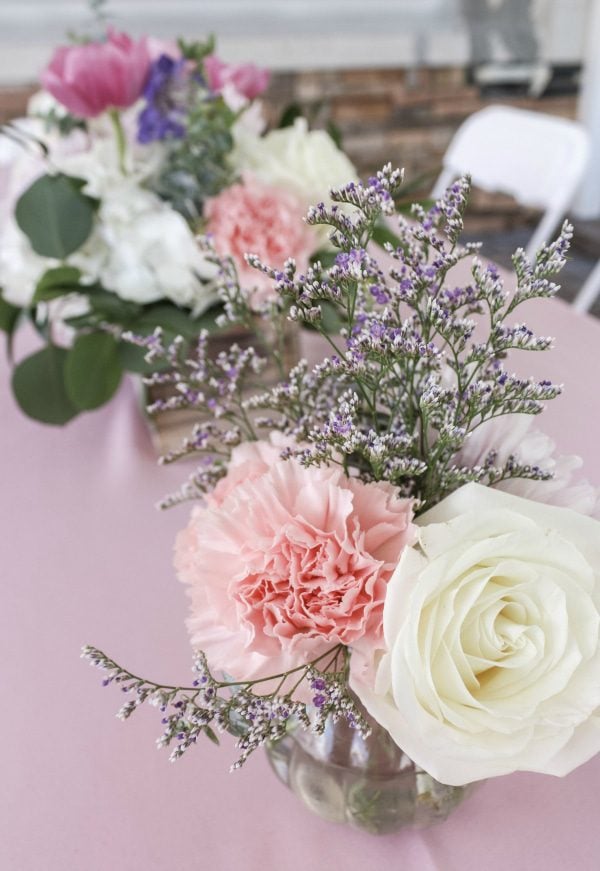 All of the flowers were sourced from Dreamery Events and it couldn’t have been any more beautiful. Not only were all of the Makeup themed party decorations perfect, but the greenery that subtly surrounded the flowers was the perfect mix for the event, as well.