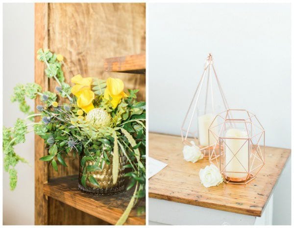 Gorgeous and bright flowers were placed into fun gold vases, which fit the theme perfectly!