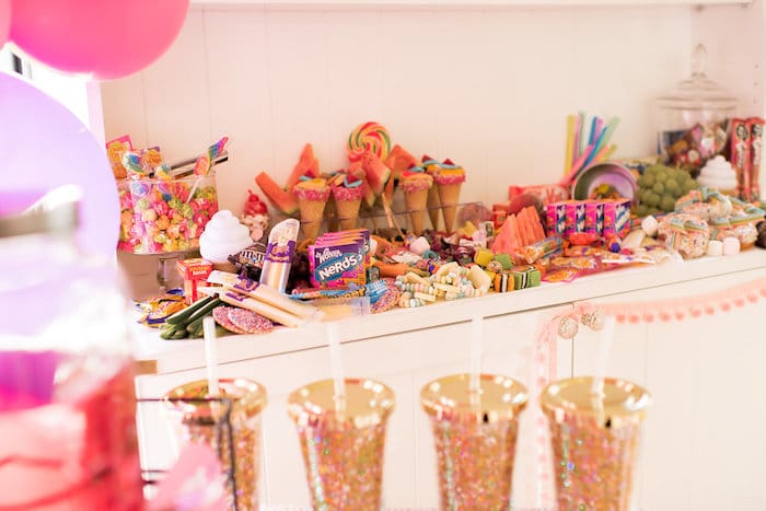 What’s one of the best parts of this Colorful JoJo Siwa Sleepover Birthday Party? All of the guests were able to dig into the candy grazing table aptly named “Like a Kid in a Candy Store”! Can you even believe it?!?!