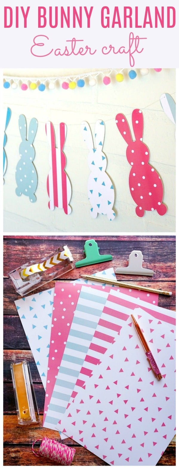 This adorable DIY Easter Bunny Garland is super easy to make and there is even a bunny template to help craft the perfect Easter decor for the holiday!