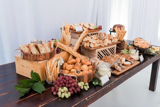 - Elegant food ideas including salad station, Mediterranean station, gourmet Mac & Cheese and a gorgeous fruit and bread area