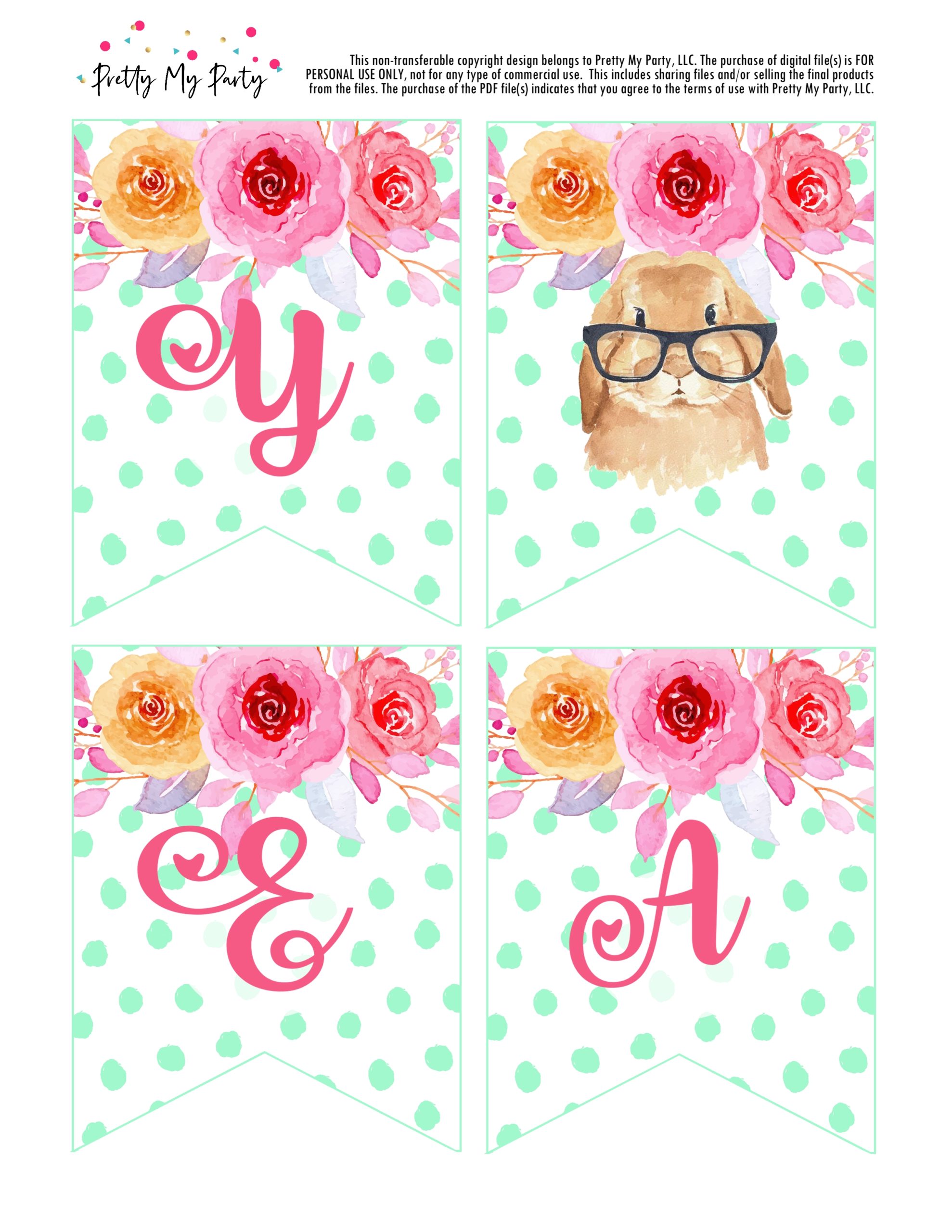 Add this Happy Easter banner to your Easter celebration! Just right click, save and print on cardstock paper. Then use a hole punch and string to assemble the banner.