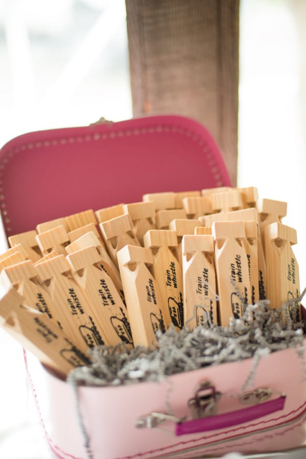 Concept & Styling: Hoopla Events// Styling Assistance: Banner Events// French Milk Bottles, Striped Paper Straws, Pink/White Striped Plates: Hoopla Events Etsy Shop// Photography: Lauren Oliver Photography// Printable Invitations & Décor: Anders Ruff Custom Designs// Printing of Large Format Backdrop Items: Print My Picture Online// Custom Laser Cut Wood “Kamryn” Railroad Crossing Sign: Ten23 Designs// Wind-up Trains, Train Whistles, Napkins, Paper Plates, Cups, Candy, Cutlery, Popcorn Boxes, Treat Boxes, Fry Containers: Oriental Trading//Blumeboxes: Blumebox// Ruffled Tablecloth: Cupcake With Character// Photo Booth Props: Little Retreats// Chunky Bubblegum Necklace: W(e)il’d Hair & Accessories// Custom Train Shirt: GreatStitch// Custom Train Track Garland & Shimmer Trains: Tutus & Bowties Events// Tissue Paper Tassel Garlands: Fancy & Fold// Personalized Clipboard: Sweet Madys// Pink Enginer Hats: PartyCheap.com// Pink and White Striped Paper, Pink Polka Dot Paper Ribbon: Smashcake& Co// Custom Lollipops: Lollipics// Custom 3-D Train Topper & Train & “3” Cupcake Toppers: Edible Details// White fondant cake with train tracks: Cakeitecture Bakery// Pink & White Personalized Cotton Candy: Soiree Event Design// Train Themed Candy Kabobs: Sweets From Heaven, Outlets At Orange// Custom Sugar Cookies: The Sugar Canvas Boutique Bakery
