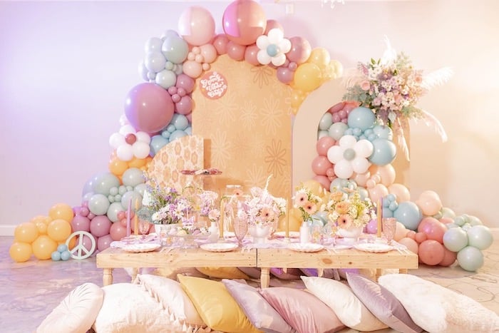 Peace, love, and party! From the gorgeous table and florals to the balloons and desserts, everything about this groovy party is pure perfection!