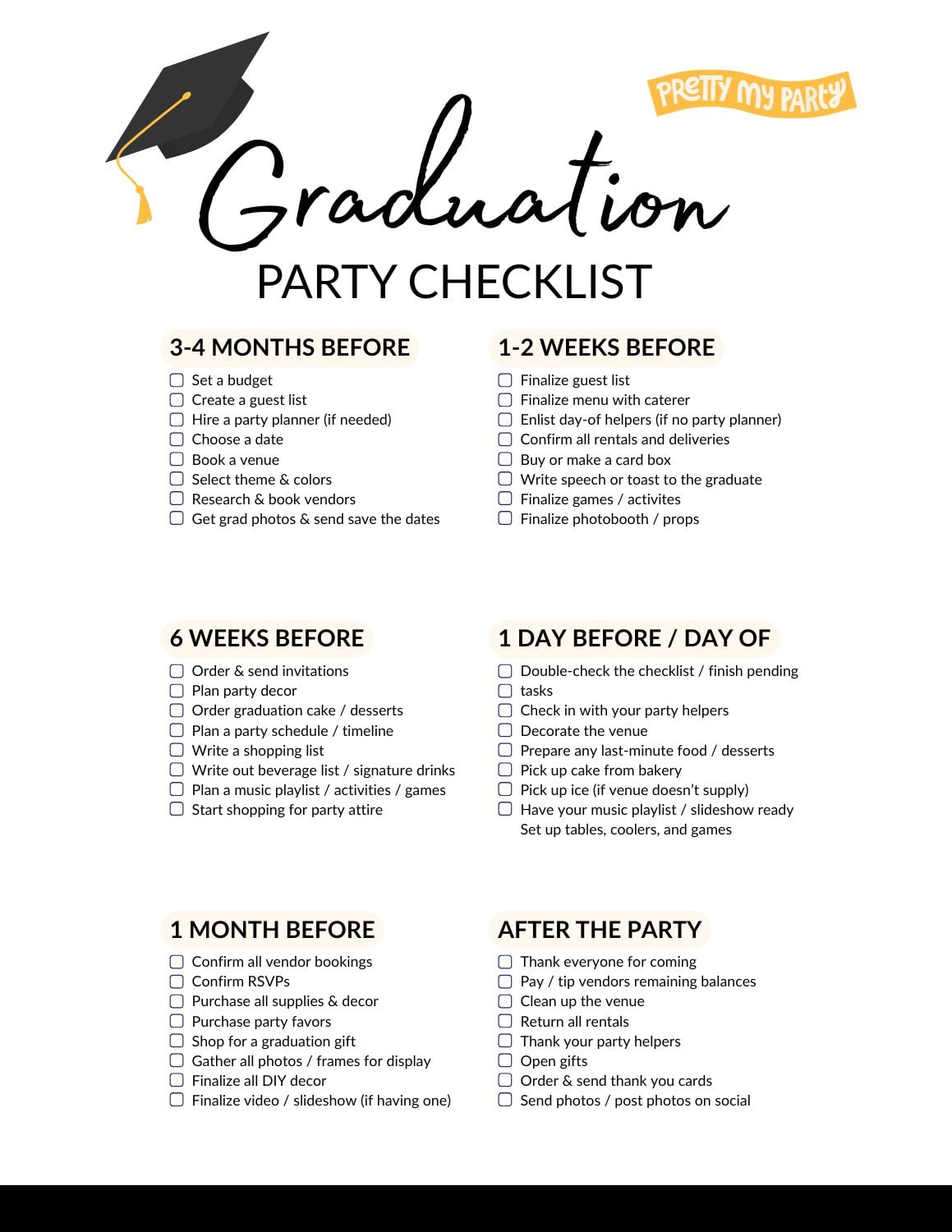 If you want an easy way to stay on track, grab this graduation party checklist and use it as your step-by-step guide leading up to the big day.