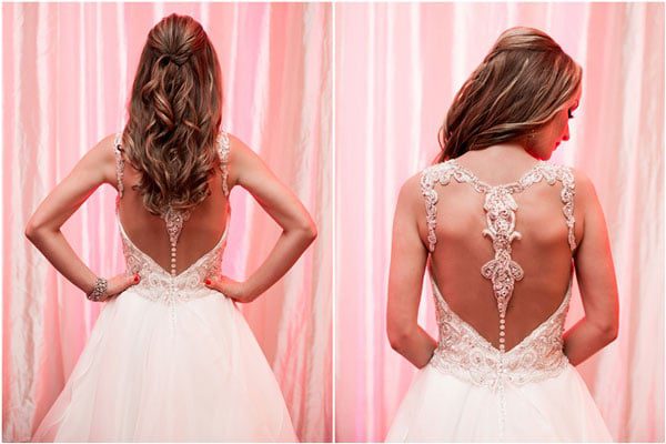 The bride’s gown was chosen at Laura Jacobs Bridal, which was a stunning wedding dress created by Martina Liana. It had gentle flowing layers of organza and elegant beadwork of crystals and pearls that adorned the bodice in the front and lined the mesh in the back. It was gorgeous and fit the theme perfectly.