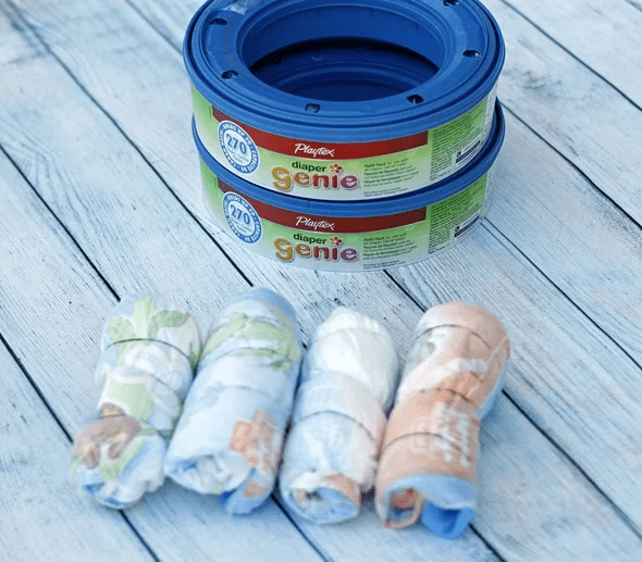 - Build a sturdy base with 2 Diaper Genie refills