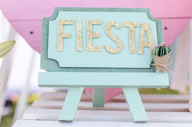 You can’t have a fiesta theme without a fun fiesta sign! We love how the sign is propped up with an easel, along with the great light blue/green color that added a little pop to the Pretty Cactus Themed First Birthday Party. It looks great, especially with the sparkly gold letters!