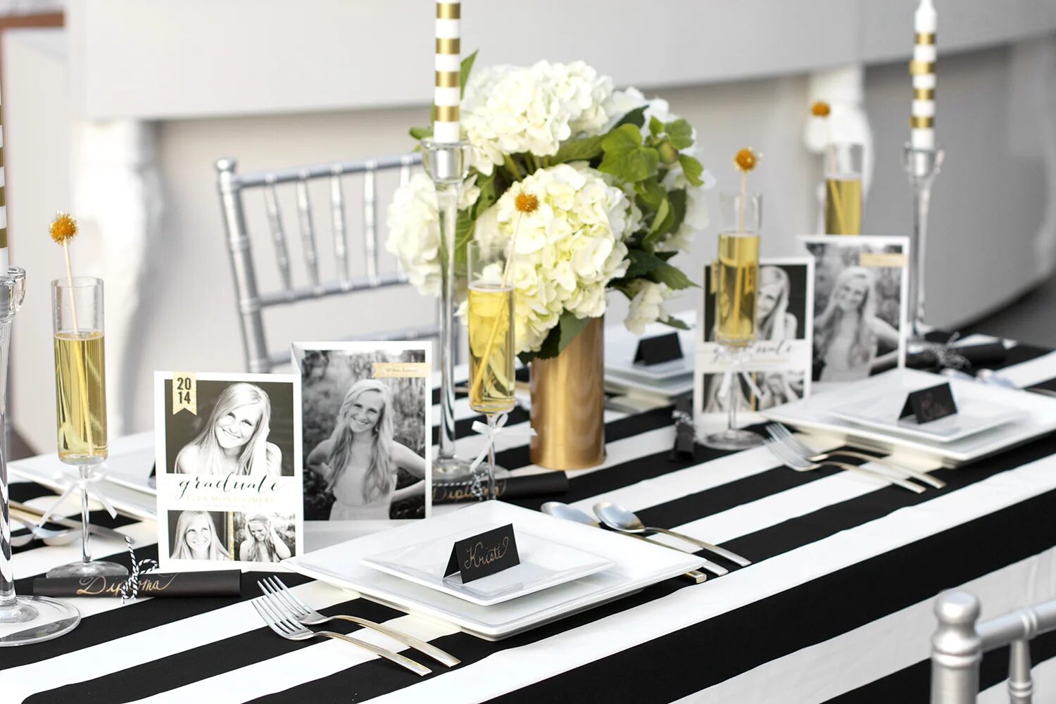 Beautiful! It’s such a classy graduation party. I love the use of the black and white table cloths.