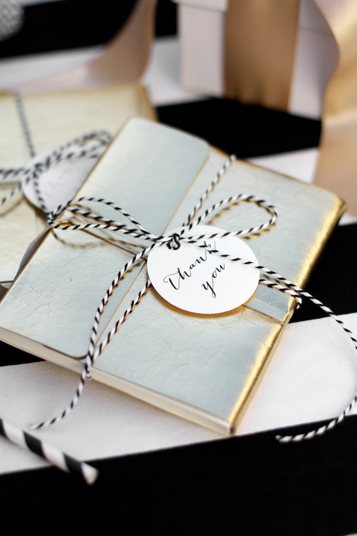 Gold notebooks from Target’s dollar section serve as practical and stylish favors, beautiful enough to match the theme, yet affordable enough to work for any budget.