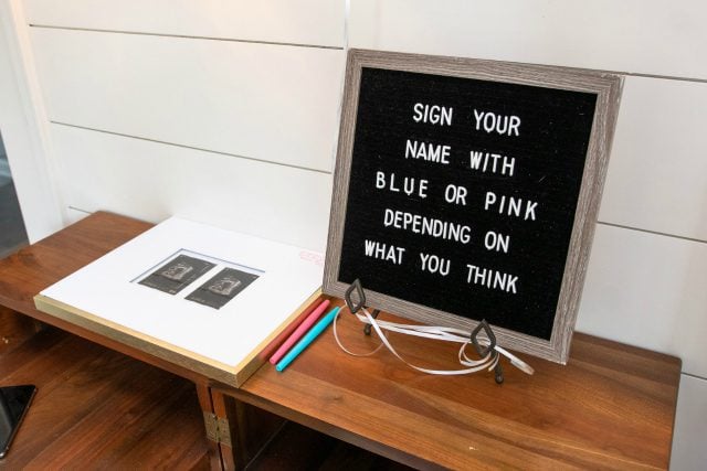 Sam and Michael decided to throw a Gender Reveal Fiesta in honor of their favorite date-night cuisine – Mexican food! They included fun touches like fiesta-theme cookies, a margarita bar, a taco buffet, and papel picado banners. All of their closest friends, family, and neighbors came to celebrate and find out the gender of Baby Brown. The guests chose pins labeled “Team Taco” and “Team Burrito”, and signed a framed sonogram of the baby in their guess of pink or blue, then gathered around for the big reveal.