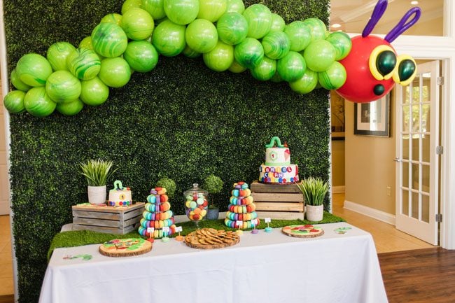 - The dessert table of this Very Hungry Caterpillar 1st birthday party was incredible, with bright colored desserts being a major hit