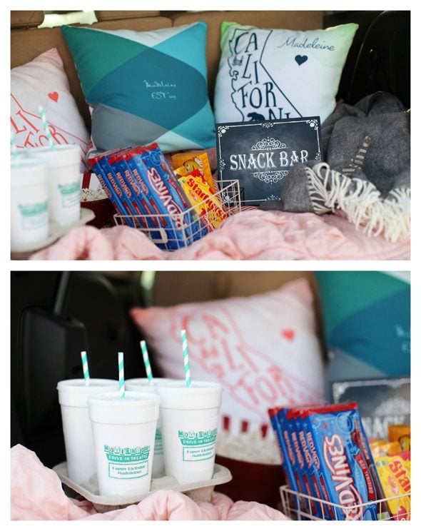 Photography: Gina Lee// Stylist: Gina Lee // Personalized Home Décor and Gifts: Tiny Prints // Movie Speaker Cake Pops and Cookies : ccSweets // Furniture Rentals : White Willow Vintage // Cake: Letti Cakes // Movie Night Cup Designs : Oh Happy Day // Venue: Van Buren Drive in Theatres