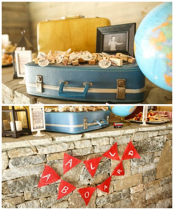 Candace is the owner of Mingle Events & Vintage Rentals and this is what she had to say about Cruz’s 3rd Birthday Party: All Aboard for a fun ride on the Cruz Express! What better way to celebrate a precious 3-year-old who loves trains than with a birthday party full of just that! Mingle Events designed a vintage inspired travel themed party complete with vintage luggage, a rotating globe and a vintage motorized train set. Guests of all ages enjoyed fueling up on “Choo, Choo Chicken,” Smokestack Sandwiches” and “Freight Car Fruit Skewers.” After the wee ones munched they all dove into the dessert “station” which included brownies, creatively named “coal,” and railroad crossing cupcakes that were too cute to eat. At the “steam engine workshop” the kiddos painted and decorated their own wooden trains to take home and enjoy, but the biggest surprise came when a life-size train pulled up! All the guests hopped on the colorful train for a ride on the Cruz Express, but not without their conductor hats, of course. Upon their departure, the party-goers took home a wooden train whistle from “baggage claim” with a note from Cruz, “Thank Choo for coming.” What a magical day for a special birthday boy!